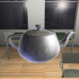 Bumpy, fresnel-shiny, dielectric, textured, with two quadratic-falloff lights. From nVidia library.