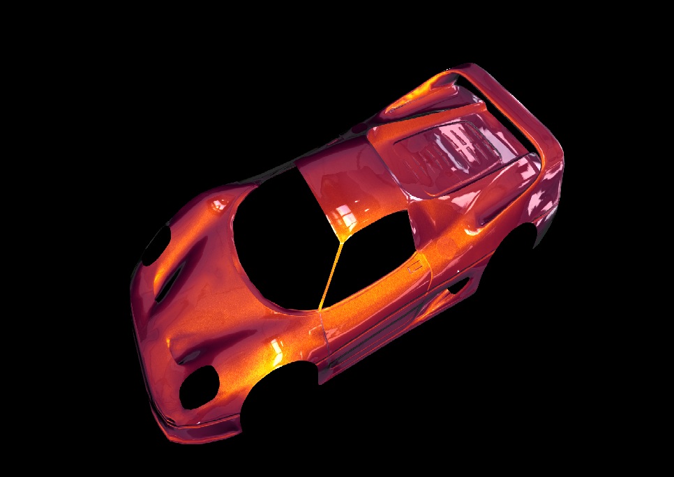Two colored carpaint-like shading with reflection and added sparkling texture.