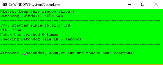 Now, open watchdog.bat in your notepad. Modify the line set patchvvvv=Watchdog (Windows) help.v4p by your path in absolute.