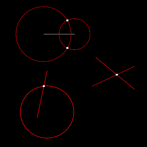 Some dynamic plugins to calculate intersections between finite lines and circles.