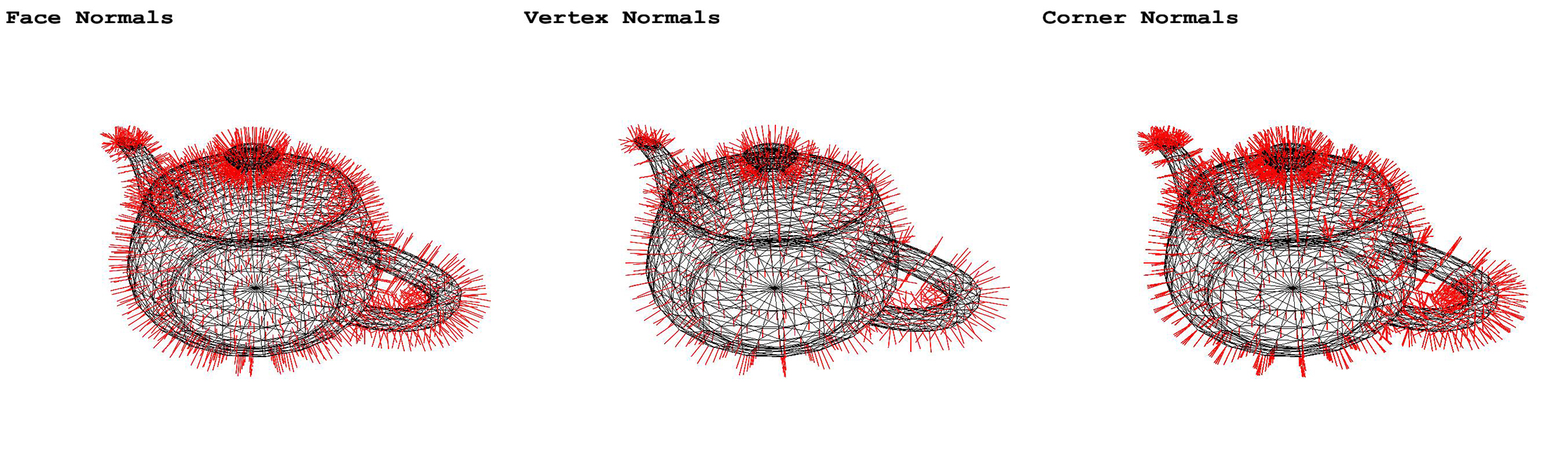 - Face normals: one normal per face (=triangle) of the mesh