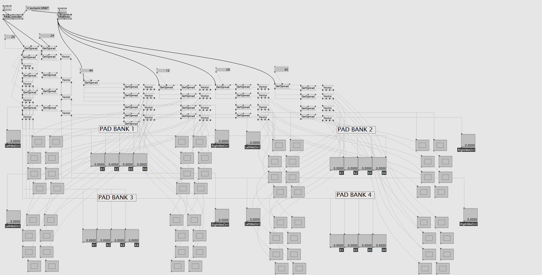 Once you've opened the vvvv.json, you can see how I mapped the Orbit,feel free to change colours and behaviour, but don't change channels or notes, that will screw it in VVVV.